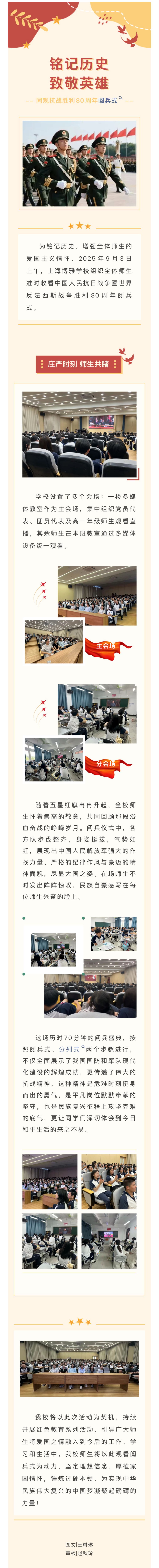 铭记历史 砥砺前行|上海博雅学校师生同观抗战胜利80周年阅兵式